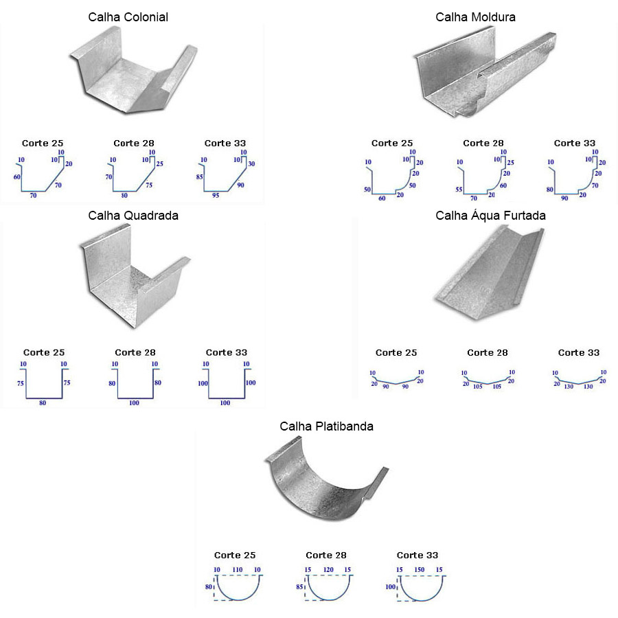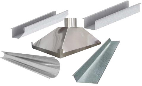 Calhas , rufos , pingadeiras, rincões, coifas , colarinhos, tampas de caixa